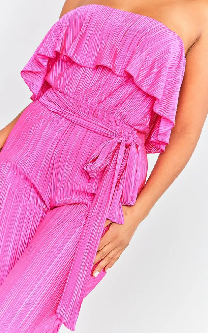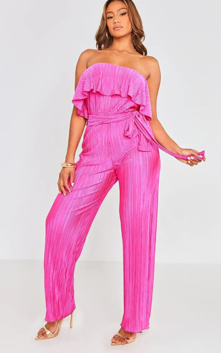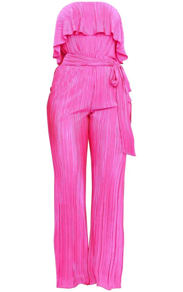 We’re obsessed with this fuchsia plisse tie waist tube jumpsuit for your weekend wardrobe. Made from a fuchsia plisse material with a tie waist and a tube design, how could you say no? This jumpsuit will take away all your what-to-wear dilemmas and earn you all the compliments. Simply add your highest heels, gold accessories and a mini bag for a look that will steal all the stares.