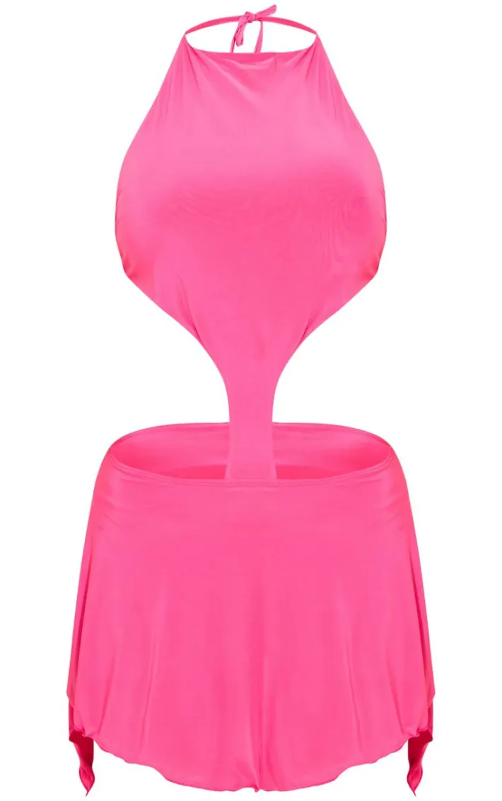 Create a look no one will forget with this fuschia slinky high neck cut out shift dress. Brought to you in a fuschia slinky material with a high neck and a cut out design, this shift dress will have you standing out from the rest. Style with high heels and accessories for a combo we canÂ’t stop crushing on.