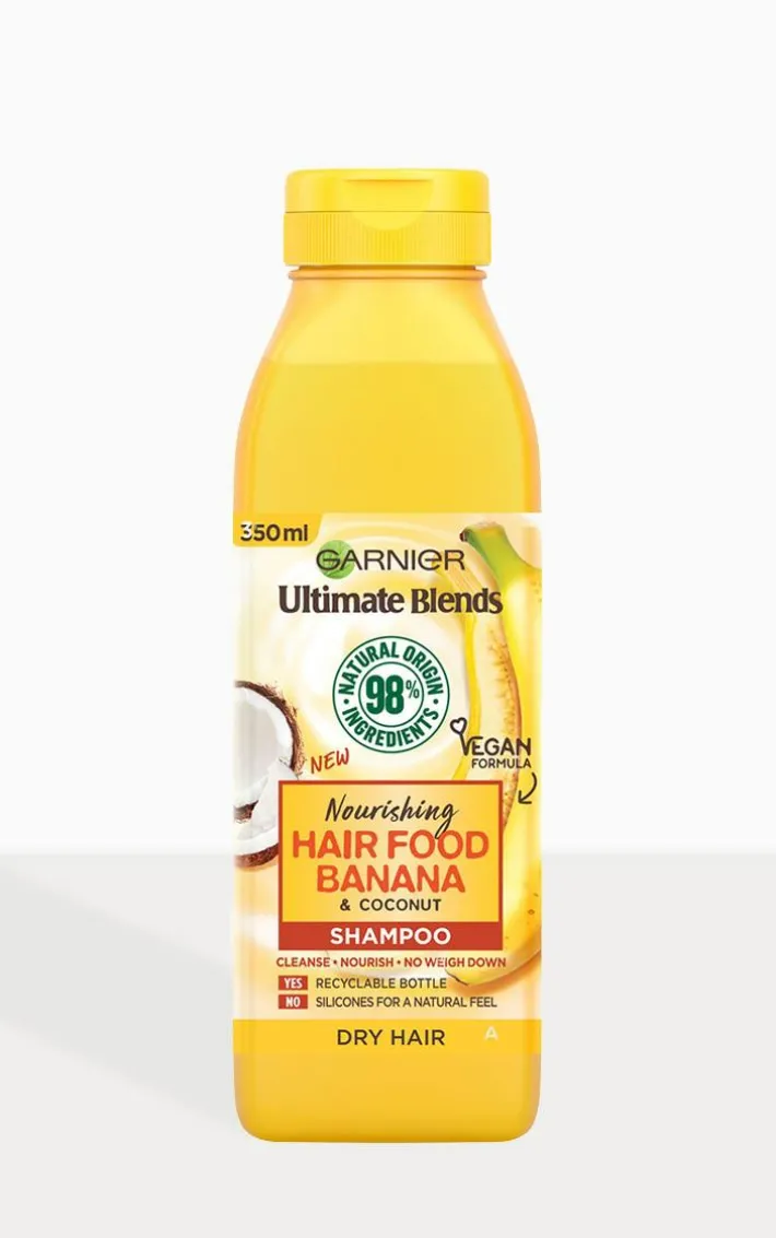Explore Garnier Ultimate Blends Hair Food Banana Shampoo to help nourish dry hair, blended with natural ingredient extracts of Banana & Coconut. Its light foam gently cleanses and nourishes dry hair, with no weigh down. For intensely nourished, healthy-looking hair.