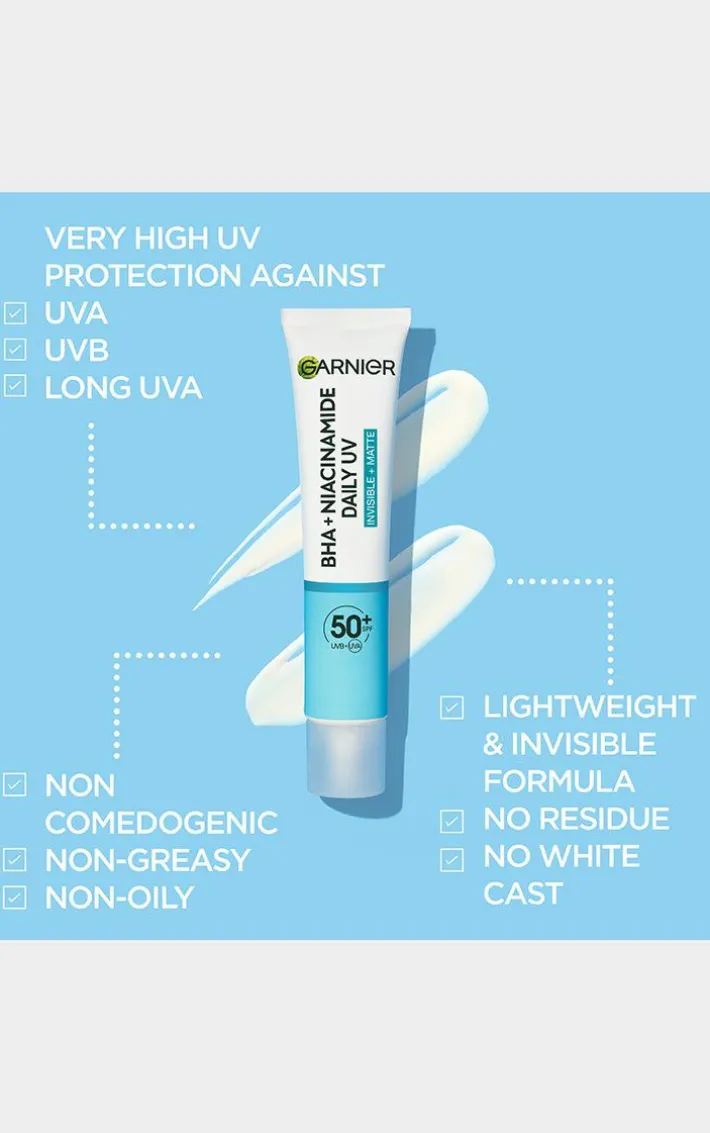 Garnier Daily UV Niacinamide, BHA & AHA, Invisible + Matte – Anti-Imperfection Fluid SPF50+, Prevents Sun Damages & Corrects Imperfections, for Face & Neck, All skin types.