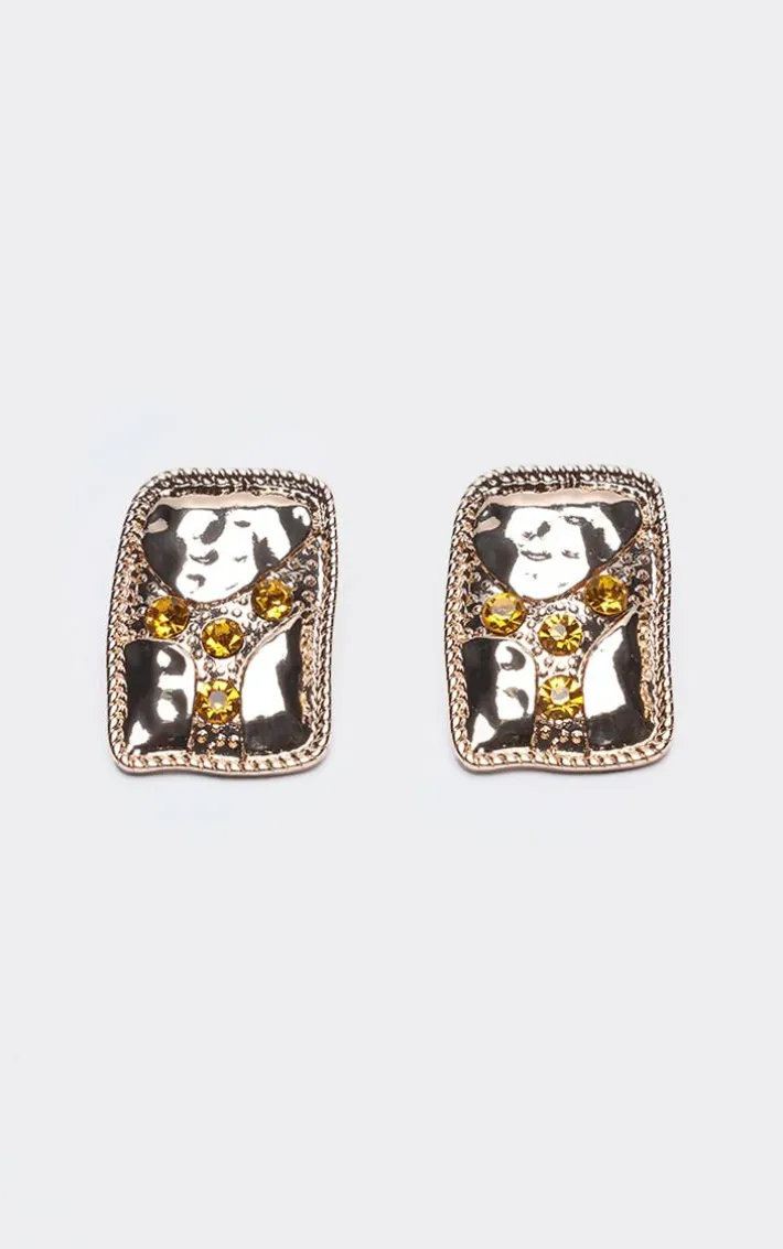 Amp up your style game with these gold abstract diamante stud earrings. Brought to you in a gold diamante material with an abstract design, these stud earrings are at the top of our most wanted list. Style with a chic outfit of the day for a look that won’t miss.