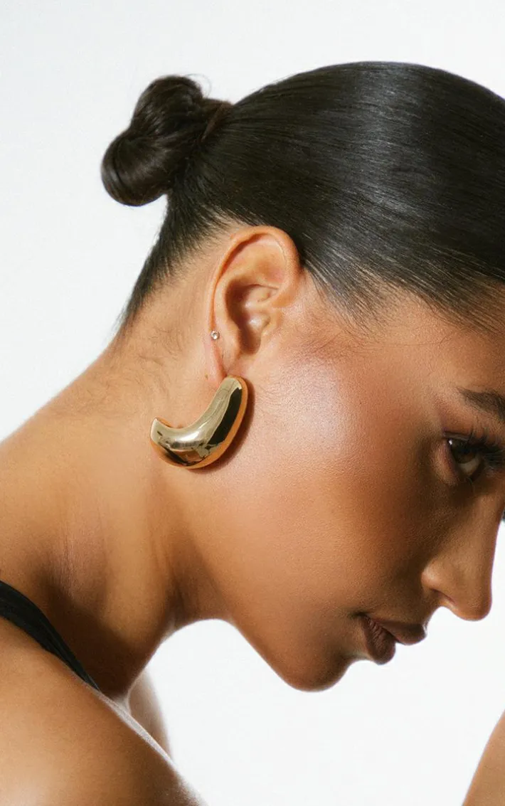 Take your look to a whole new dimension with these gold chunky flat curved earrings. Brought to you in a gold material with a flat curved style and a chunky design, how could you resist? Wear these with you look of the day to insantly elevate the vibe.