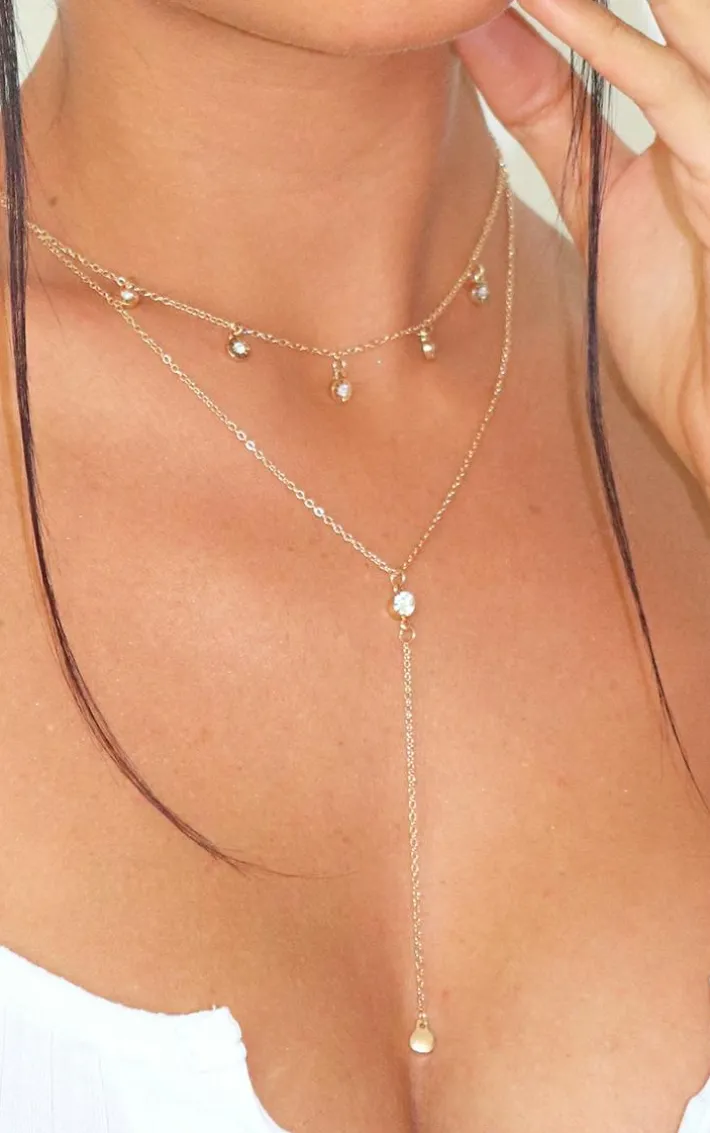 Simple but chic this necklace will add the right amount of glam to your look. Featuring a gold diamante chain in a drop design, we are obsessed. Team this with your outfit of the day to complete the look.