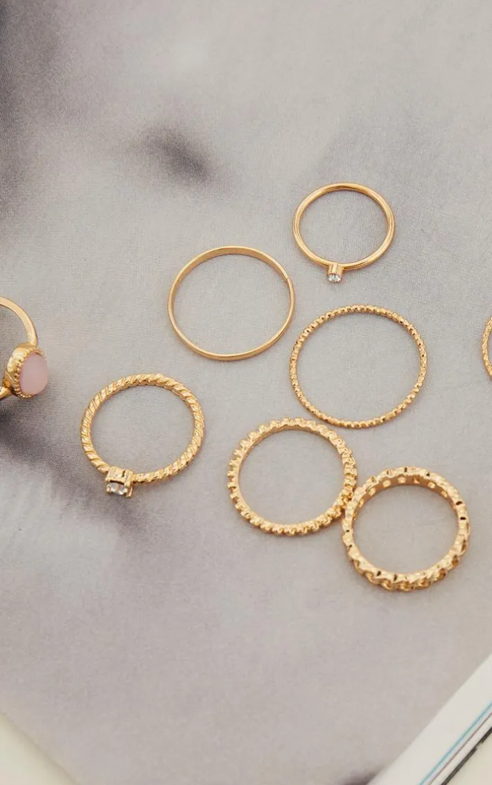 These rings are perfect for switching up your look. Featuring a gold textured detail in eight various designs, we’re obsessed.