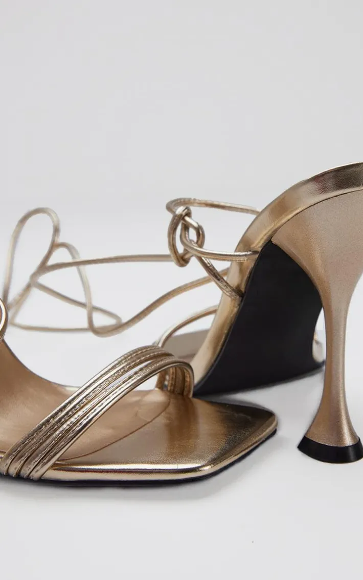 Elevate any look with these gold PU square-toe triple strap lace-up mid-heeled sandals and grab everyone’s attention this weekend. Their gold PU material will level up any look and their triple strap design adds a glam touch. These heeled sandals are the perfect addition to any weekend look and their tie-up fastening gives it a fiercely feminine vibe. Team with your outfit of the night for a look that is sure to impress.
