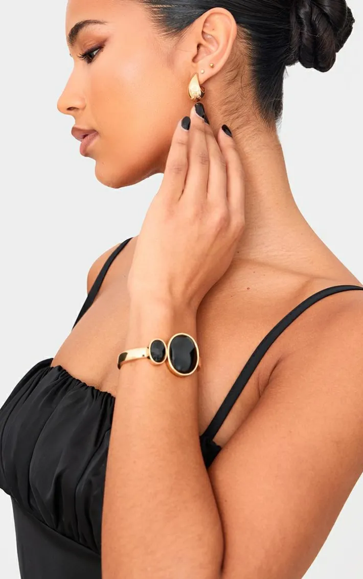 Take your outfit of the day to new heights with this gold resin jewel clasp bangle. With a gold resin material, jewel detailing and a clasp fastening, what more could you need? Style this gold bangle with any look for the perfect finishing touch.