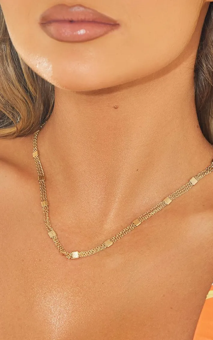 Finish off your outfit of the day in style with this gold squared hammered textured necklace. You’re sure to be earning all the likes with this unreal necklace. It includes a gold hue material with a squared design and a hammered textured style, how could you not be in love? Pair this women’s textured necklace with your fave new season fit for a look that will have you nailing major trends.