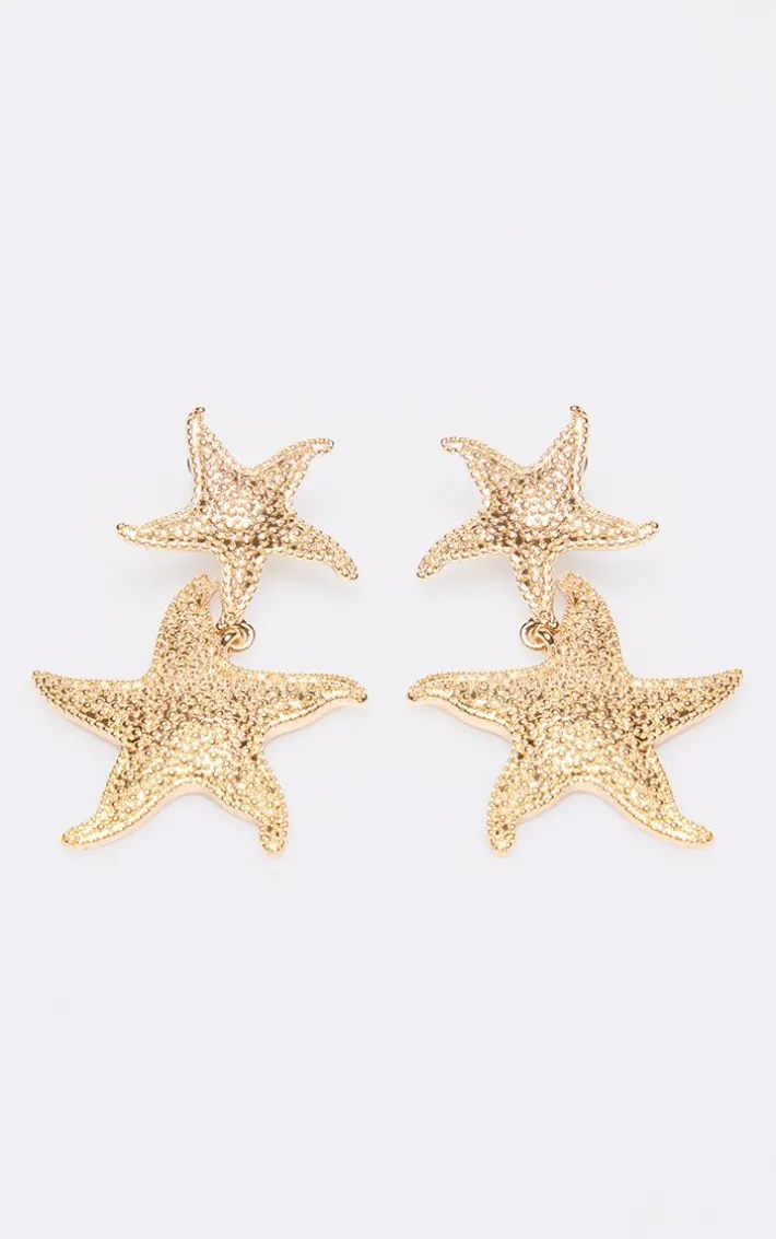 Level up your look with these gold starfish detail drop stud earrings. Brought to you in a gold hue with a starfish detail adding a touch of luxe like no other. These stud earrings have a drop detail that will have you setting trends wherever you step foot. Team with your fave outfit to turn heads for all the right reasons.