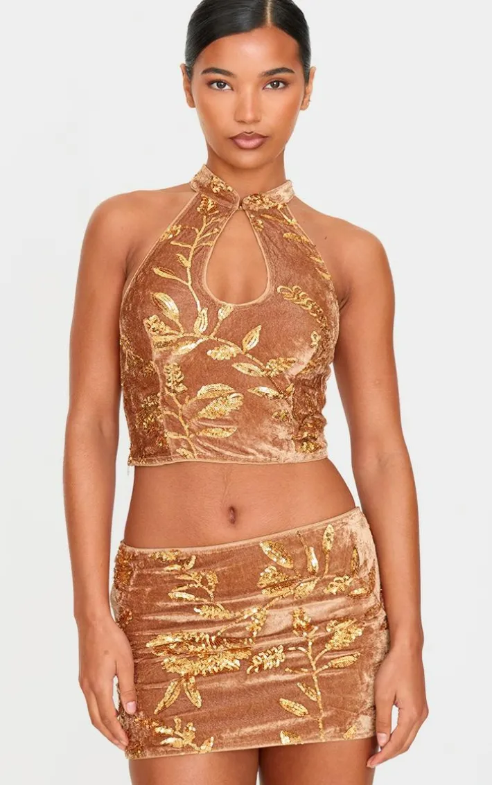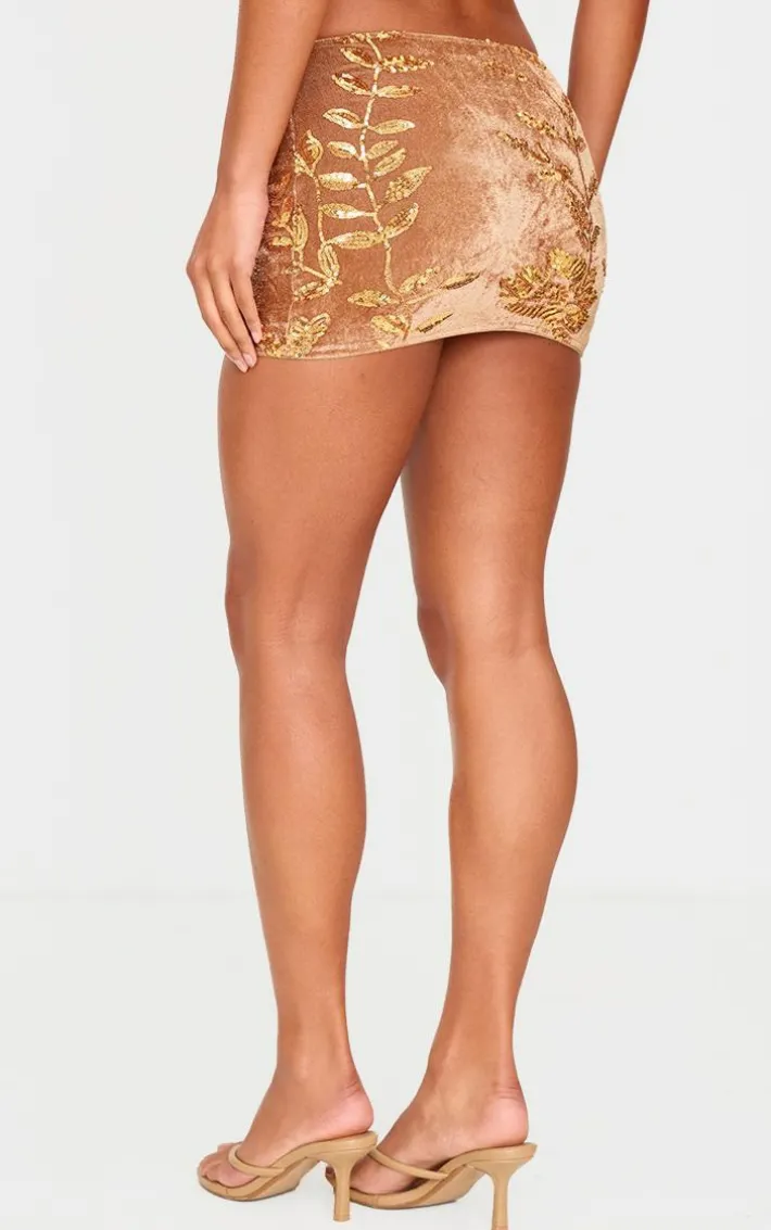This golden olive velvet floral sequin embellished micro mini skirt is perfect for whatever your weekend plans. Brought to you in a must have golden olive hue, with a luxe velvet material, floral design and sequin detailing. We’re loving the embellished finish, and paired with the matching top and a pair of heels, it’s a yes from us.
