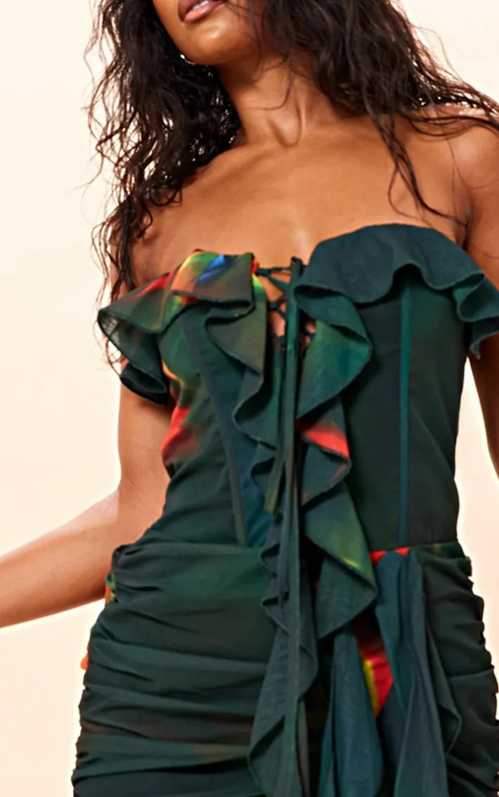 We have got your weekend ‘fit covered with this so stop scrolling and add this green abstract lace up ruffle mini dress to your basket. Brought to you in a green abstract material with a lace up decide, ruffle detail and a mini length, what more could you ask for? This is at the top of our hitlist this season and is sure to impress. Simply team with your fave heels, gold accessories and a mini bag to nail all the major trends.