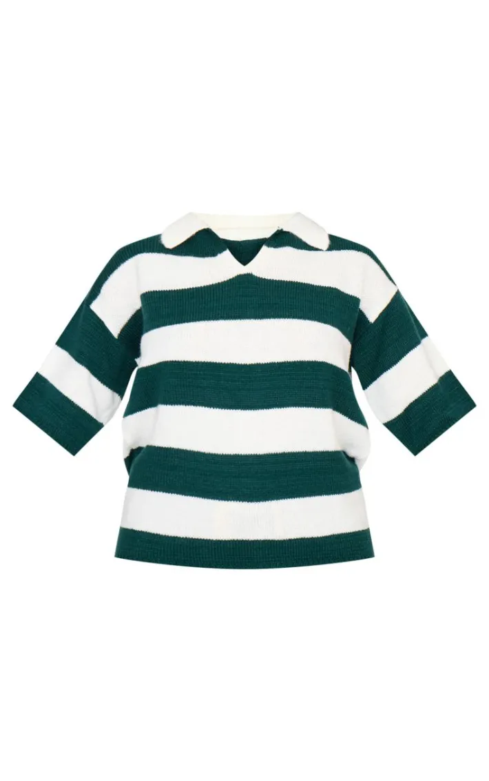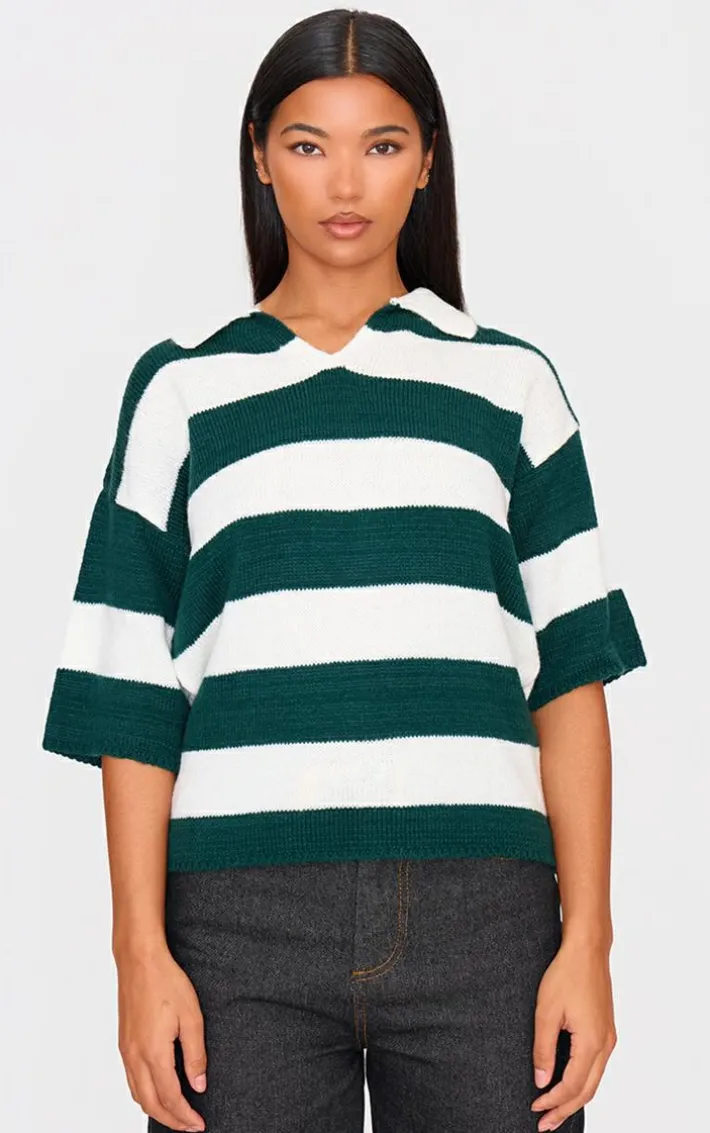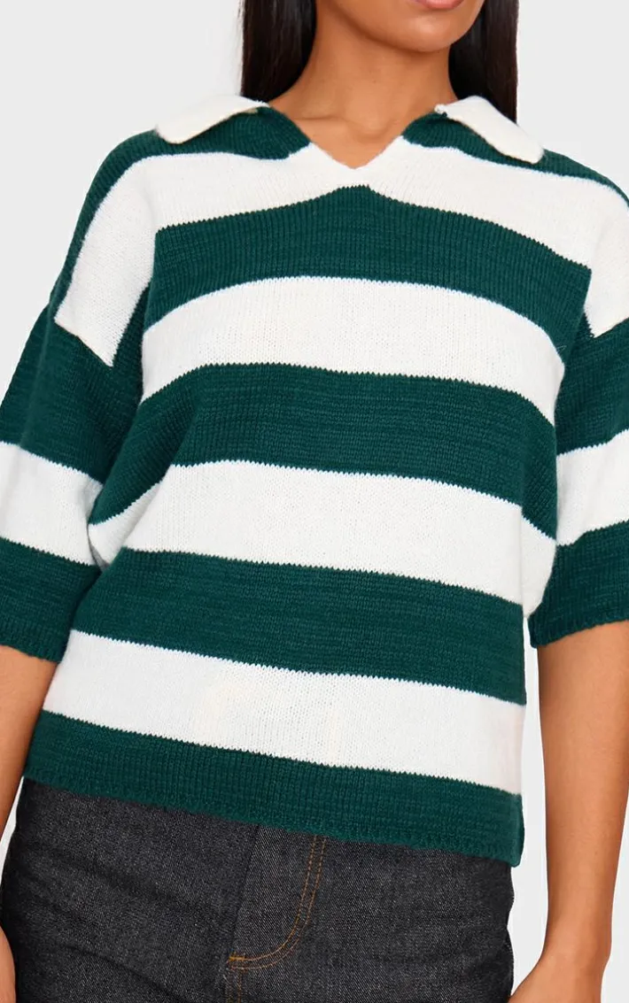 Show off your styling techniques with this green and white stripe knit v neck oversized rugby top. Brought to you in a green and white knit material with a stripe design and a v neck detail, what more could you want? Team this rugby top with a pair of jeans, chunky loafers, and a maxi coat to finish off the look we are loving.