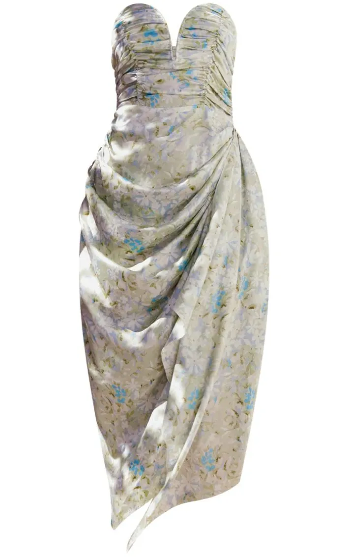 Give your wardrobe that staple summer look with this green floral print satin ruched plunge midaxi dress. This dress is made from a green satin material that will have you feeling on trend this season. Its floral print design and with its plunge detail, this midaxi dress with be showing off your unreal figure, it’s a yes from us. This midaxi dress is perfect for all your plans this summer. Style with some slip-on heels, gold accessories and a shoulder bag for a look that won’t go unnoticed.