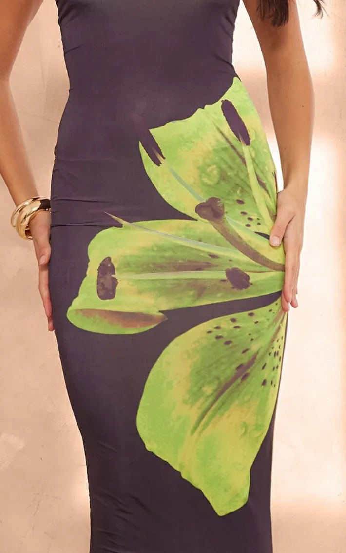 You need this green floral print slinky bandeau maxi dress in your collection. Brought to you in a green slinky material with a floral print design, we are obsessed. This maxi dress has a bandeau design that will have heads turning for all the right reasons. Team with a pair of heels and a statement bag to finish off the look we are loving.