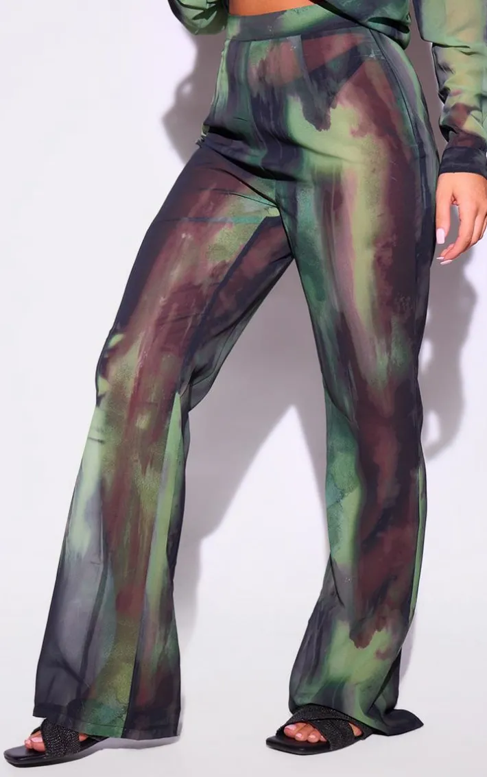 Take your vacay look to new heights with these green grunge print beach flares. Brought to you in a green hue material with a grunge print design and a flattering flared leg fit, what’s not to love? Style these beach flares with the matching shirt, your fave bikini and gold accessories for a look that is sure to steal all the stares.