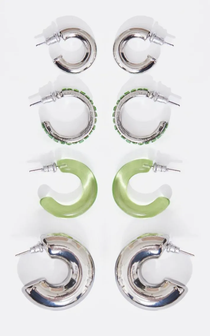 Get your glam on with these green jewel and resign multipack hoop earrings. These earrings are brought to you in a pack of 4 all in a silver hue with a green jewel detail, how could you say no to this? Style these with your outfit of the day for a chic finish.