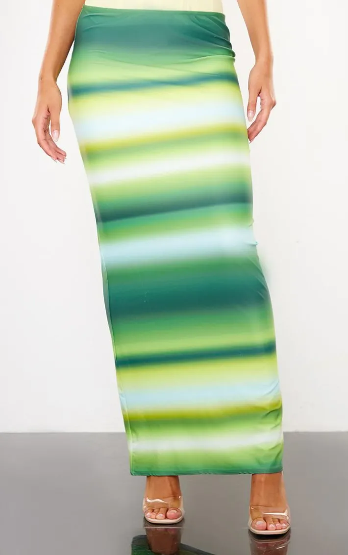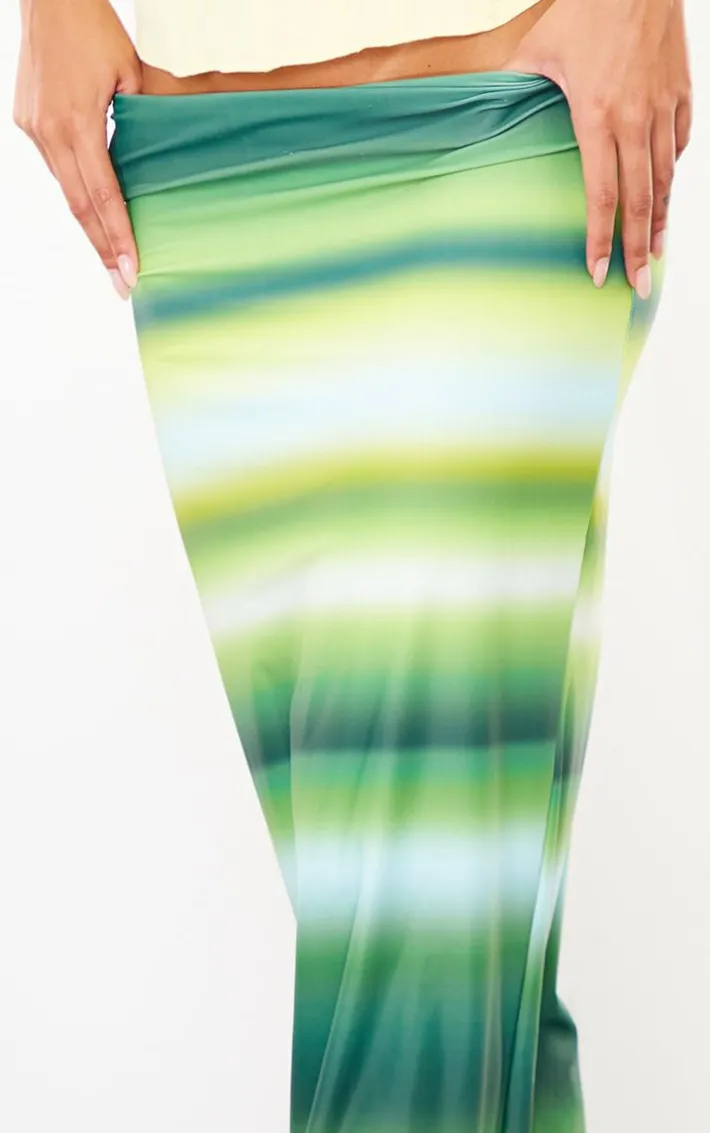 Take your weekend look to new heights with this green ombre printed matte sculpt tie waist maxi skirt. Brought to you in a green hue matte sculpt material with a dreamy ombre print design, tie waist detailing and a flattering maxi fit, how can you resist? Style this maxi skirt with a corset top and clear strap heels for a look that is sure to make heads turn wherever you go.