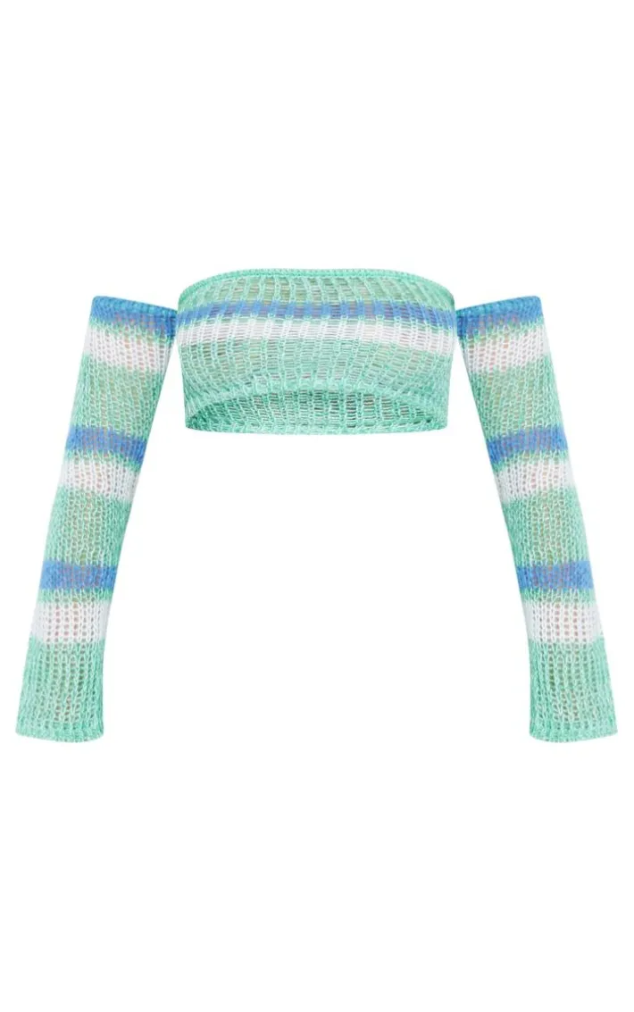 Switch up your usual off-duty ‘fit with this green open-knit off the shoulder bandeau top. Its green open-knit material adds both a touch of luxe and some fresh feels to your look. This top also features an off-the-shoulder design and cropped length which will give you endless styling possibilities. Style with the matching skirt, flatform sandals and gold hoop earrings for a vibe that won’t go unnoticed.