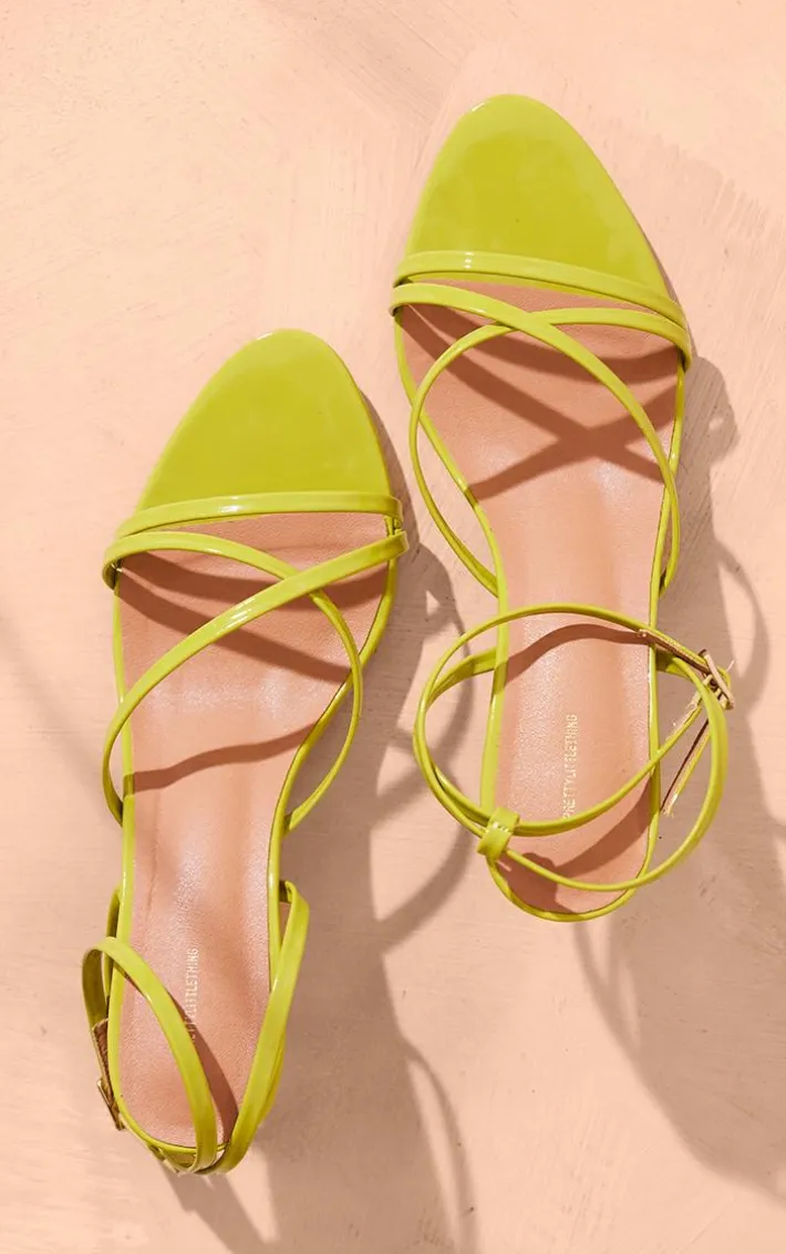 Glam up your look with these green patent PU point toe cross strap heeled sandals. These sandals are brought to you in a green patent PU material with a pointed toe and buckle fastening, how could you turn this down? Pair these with your outfit of the day for a glam finish.