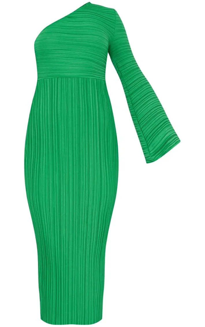 Take a risk this season and dare to stand out with this dress. Featuring a green plisse material with a one shoulder design, flared sleeve and midaxi length, what’s not to love? Max out the new season style and pair with slip on heels and a statement bag.