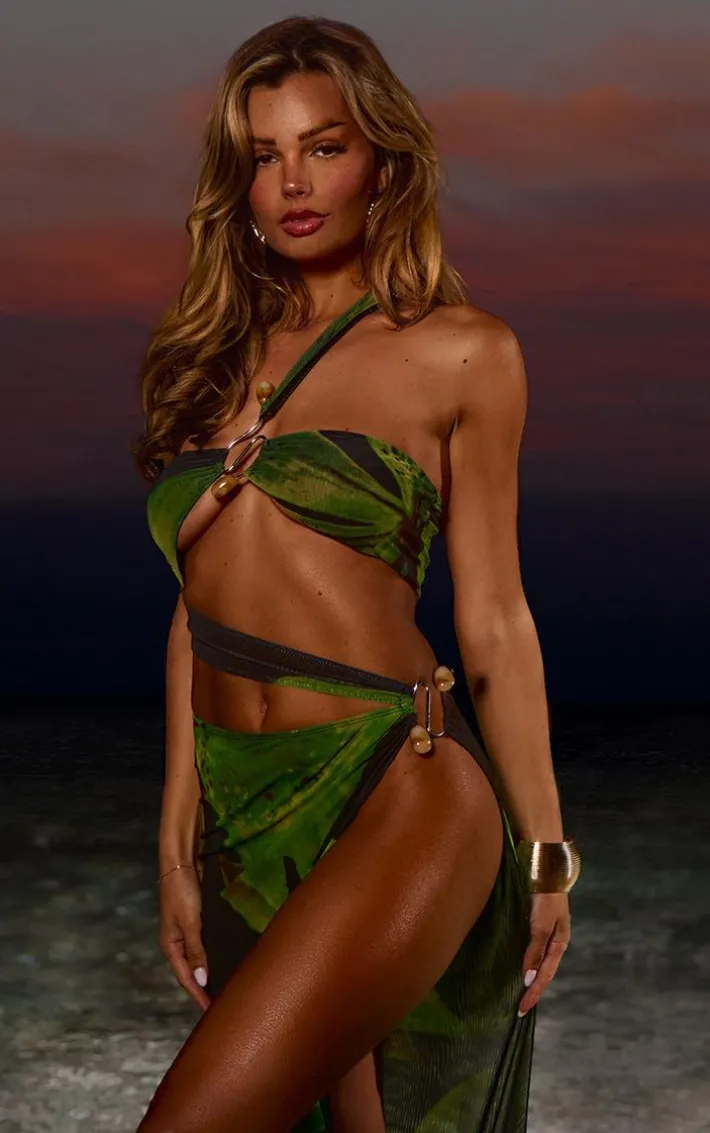 You are guaranteed to steal all the stares in this green printed asymmetric maxi dress. Brought to you in a green hue material with a printed design and an asymmetric hem, how can you resist? Style this flattering maxi dress with heels and some glam accessories for an occasion look that won’t go unnoticed.