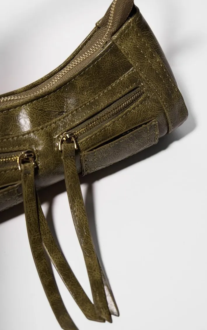 Add an edge to your accessory collection with this green PU utility mini shoulder bag. Brought to you in a green PU material with a utility design and a zip fastening, what more could you want? Style this shoulder bag with your outfit of the day for a statement finishing touch.