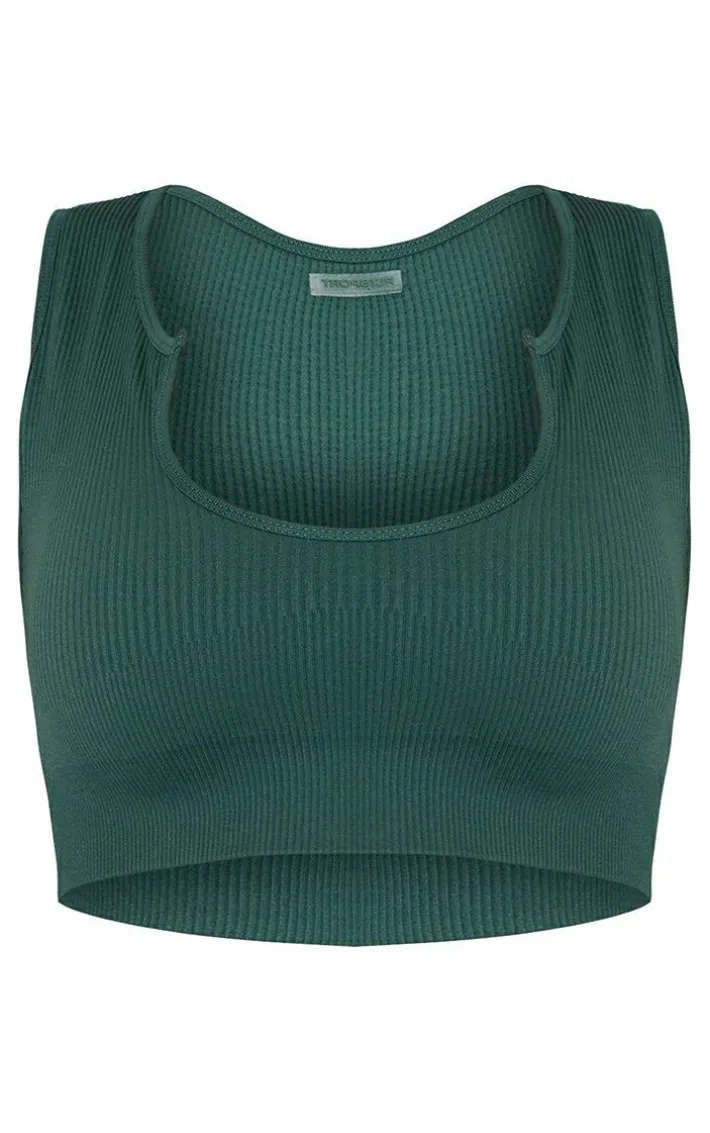 Get ready to boss your next workout with this sports top. Featuring a green ribbed seamless material with short sleeves and a slash neck design, what’s not to love? Team with matching leggings and box-fresh kicks for a coordinated look.