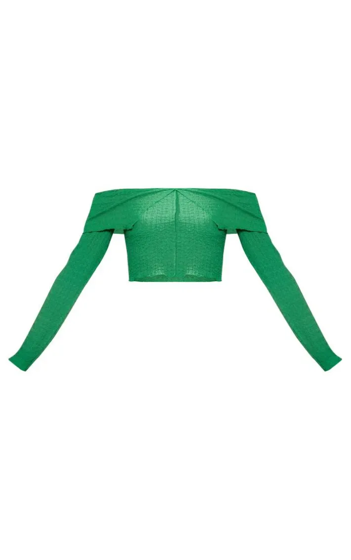Stand out from the rest with this green textured popcorn foldover bardot top. Brought to you in a green textured material with a popcorn design, what’s not to love? This top has a foldover detail and a bardot fit, its a definite yes from us. Team this unreal top with a mini skirt and your fave heeled boots to finish off the look everyone is loving.