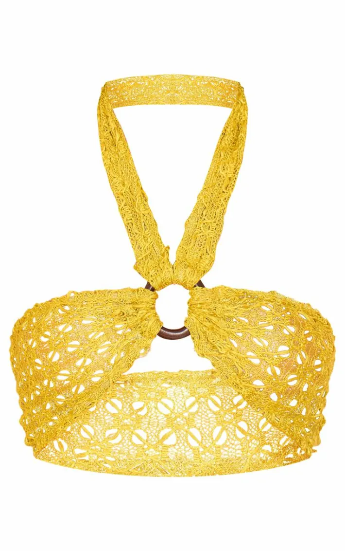 Create a look no one will forget with this green textured tassel ring halterneck detail bandeau. Brought to you in a green textured material with a halter neckline and ring detail, this bandeau will have you standing out from the rest. Style with the matching skirt, high heels and accessories for a combo we can’tstop crushing on.