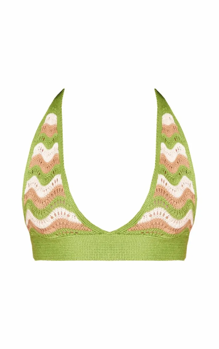 Get ready to nail major trends this season with this green wave knit textured halterneck crop top, you’re sure to be earning all the compliments. Made using a green wave knit material with a halterneck style and a cropped length, you won’t be able to resist this top. Pair with the matching shorts and your go to accessories for a fool proof finish.