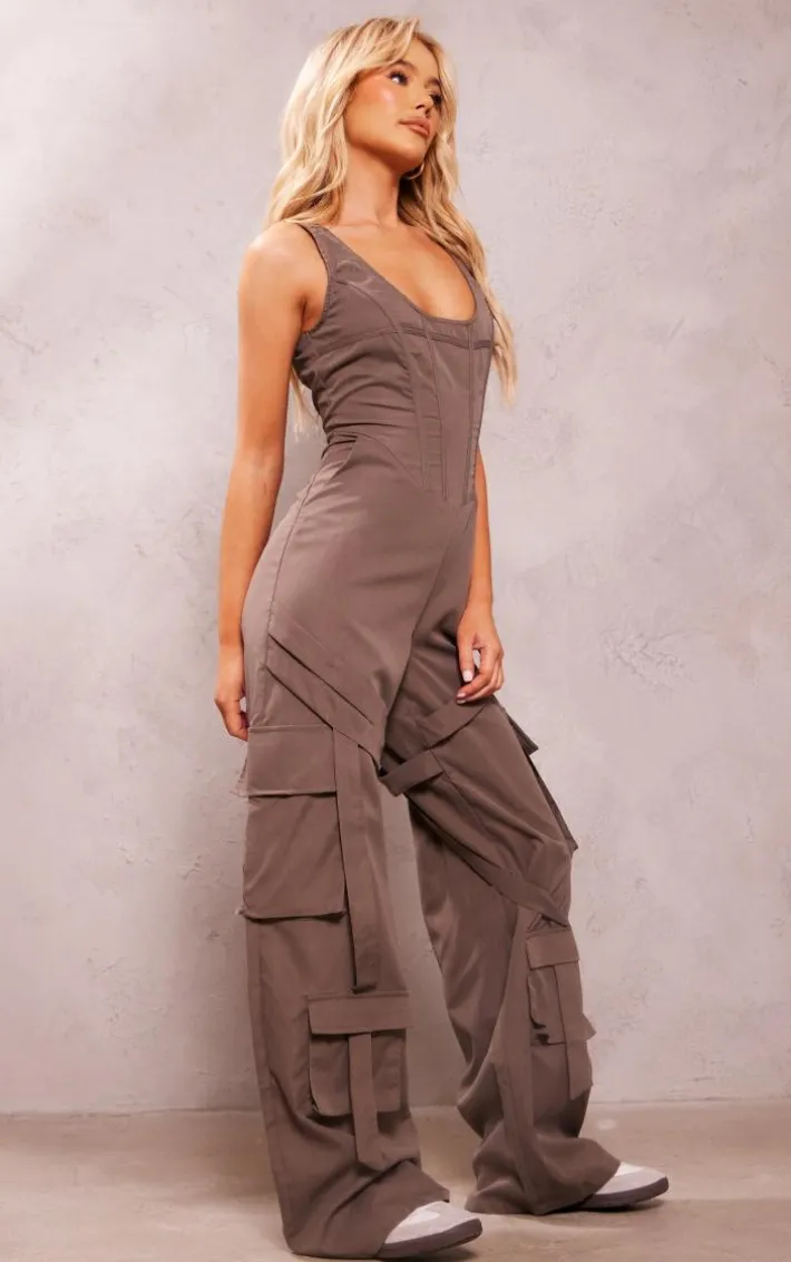 You are sure to earn some serious style points in this grey corset utility jumpsuit. Brought to you in a grey hue material with a flattering corset fit and an on-trend utility design, how can you resist? Keep it casual and team this grey jumpsuit with sneakers and gold accessories for a look that is sure to take your outfit of the day to a whole new level.