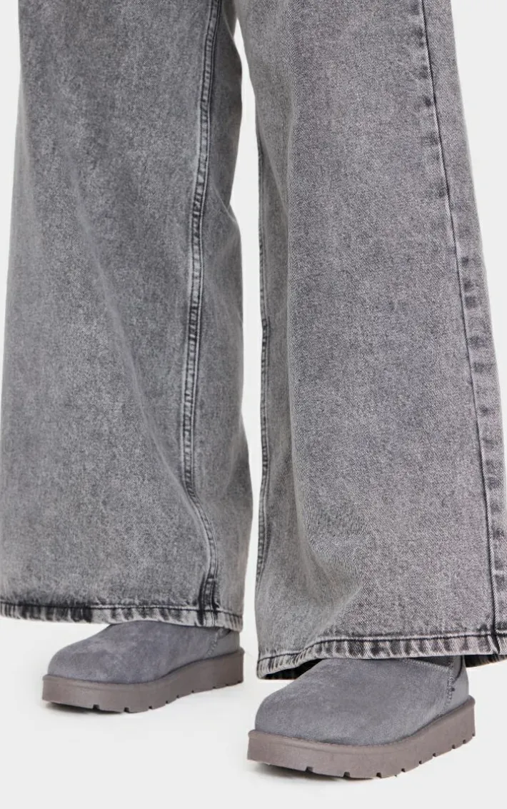 Keep it comfy with these grey faux suede cleated ankle boots. Brought to you in a grey faux suede material with a cleated design, we are seriously obsessing over these boots, they are a must have in every s wardrobe. Team with your fave laid-back look to turn heads this season.
