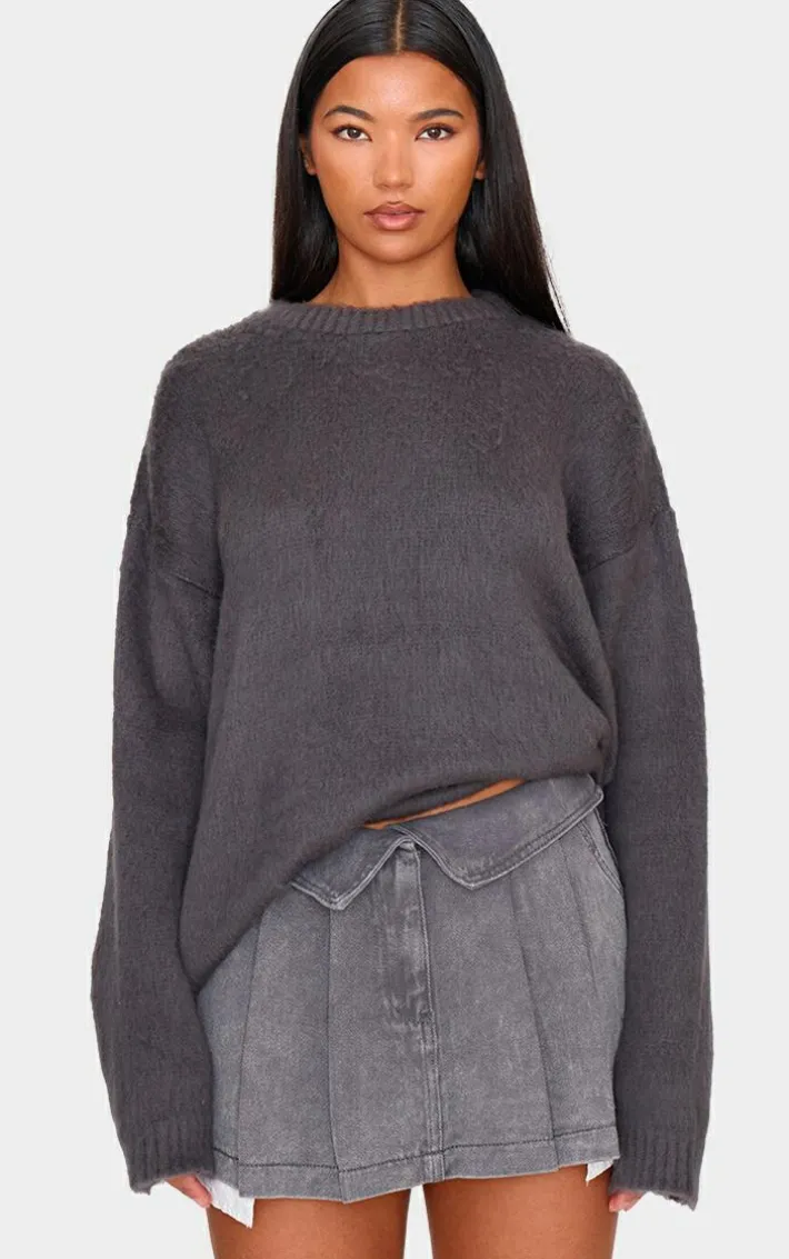 Give your new season wardrobe the upgrade it deserves with this grey fluffy knit oversized sweater. Brought to you in a grey fluffy knit material with an oversized fit, what’s not to love? Style this grey sweater with a mini skirt and loafers for a simple yet chic everyday look like no other.