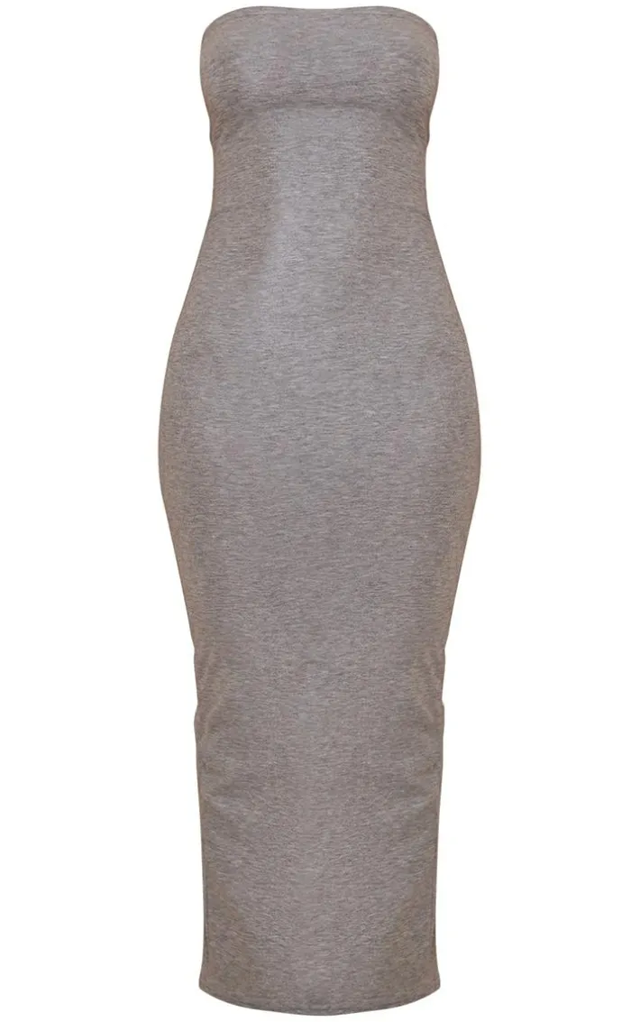 Make styling simple in this figure-flattering maxi dress. Brought to you in a grey marl material with a bandeau design, we are obsessed. With a maxi length, you wont blend in , what’s not to love? Keep it casual and just add fresh kicks and your fave accessories to complete the look everyone will be talking about.