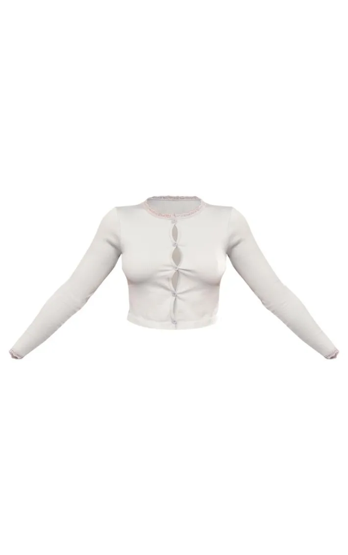 Keep it effortlessly chic with this grey marl lace trim snatched rib button up long sleeve top. Brought to you in a grey marl material with a lace trim design and a snatched rib detailing giving you a flattering fit like no other. This long sleeve top has a button up fastening we just can’t get enough of. Team with your fave accessories and a mini skirt to set major trends this season and beyond.