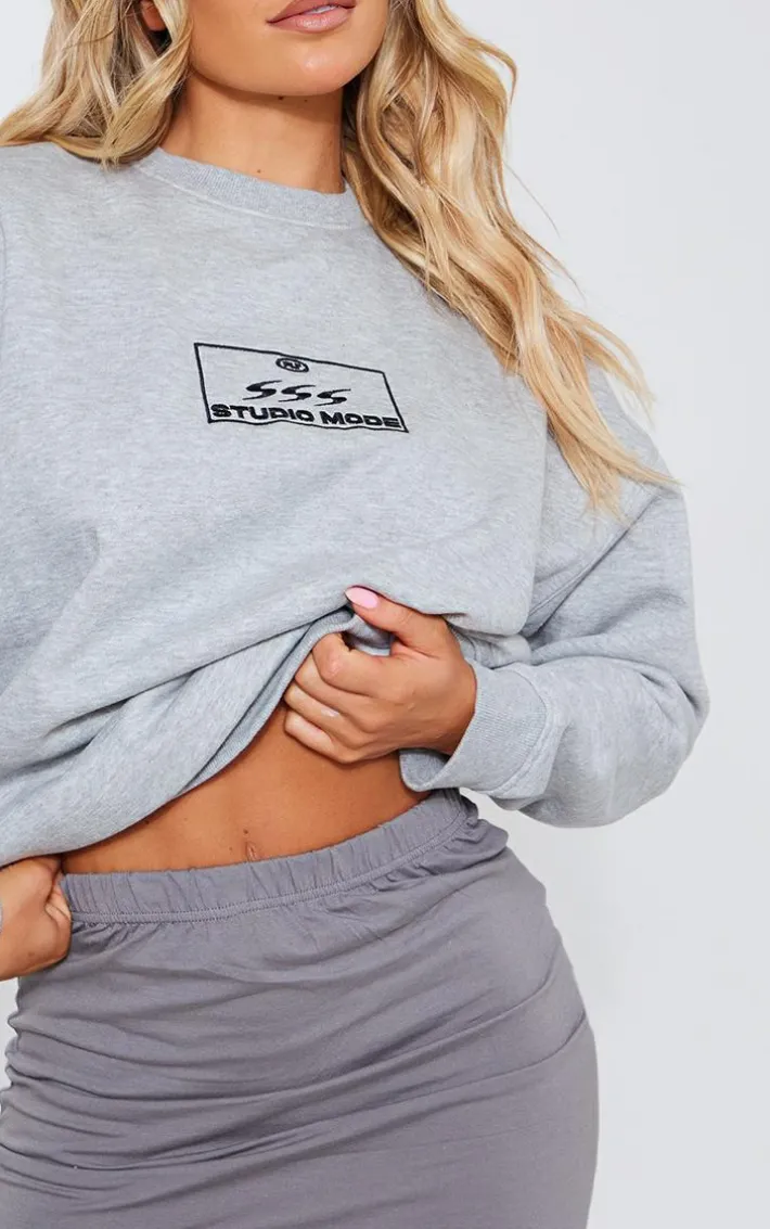 This grey marl studio mode embroidered sweatshirt is the ultimate essential for your wardrobe this season. With a grey marl hue material, a ‘Studio Mode’ embroidered detail and a relaxed fit, how could you say no? This sweatshirt is sure to give you endless styling possibilities and we know you won’t be able to resist that. For a fresh finish that won’t go unnoticed, team with a mini skirt, chunky kicks, and everyday accessories.