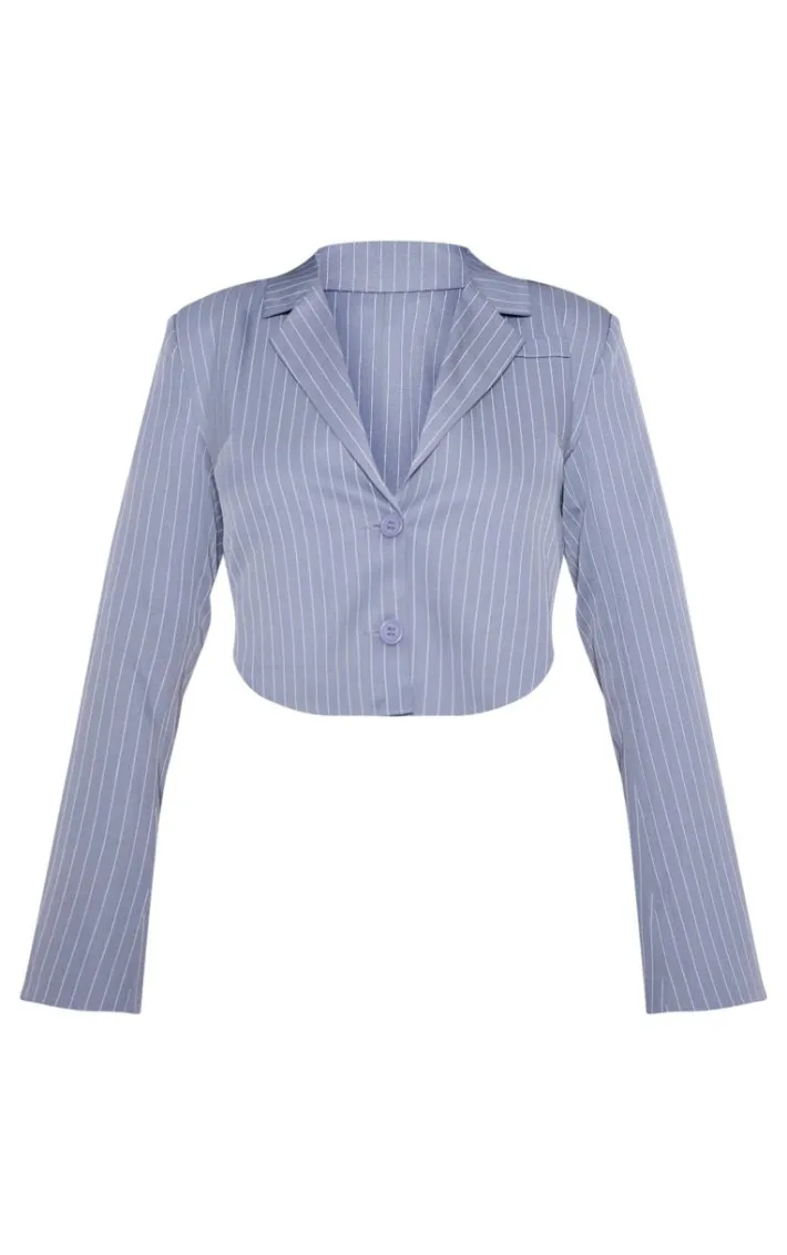 Nail major trends with this grey pinstripe curved hem cropped blazer. This blazer is brought to you in a grey pinstripe material with a curved hem and a cropped length, what’s not to love? This blazer is everything and more we’re loving paired with hot pants, high heels and accessories for a glam finish.