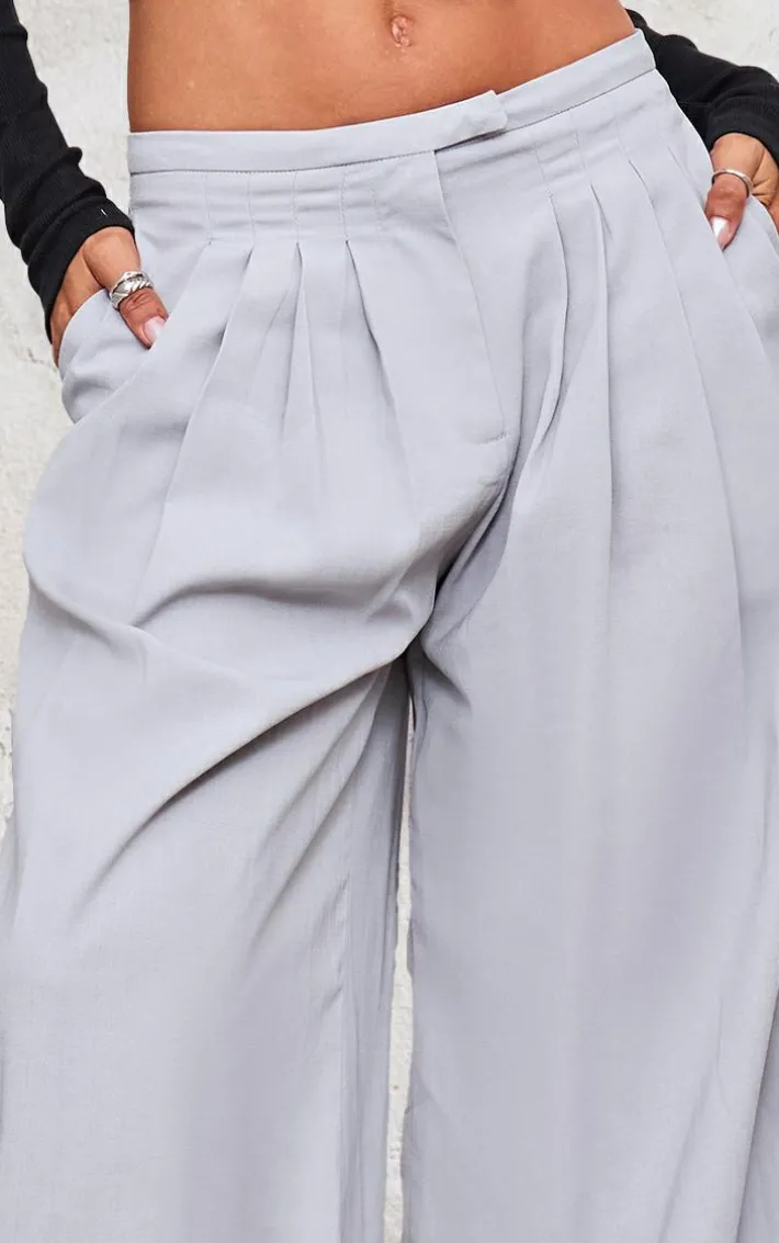 Show off your confident side with these grey pintuck detail wide leg tailored pants. Brought to you in a grey material with a pintuck detail and a wide leg design, what’s not to love? These tailored pants are the perfect addition to any look. Team with your fave accessories and a pair of heels for a finished look that is sure to get you noticed.