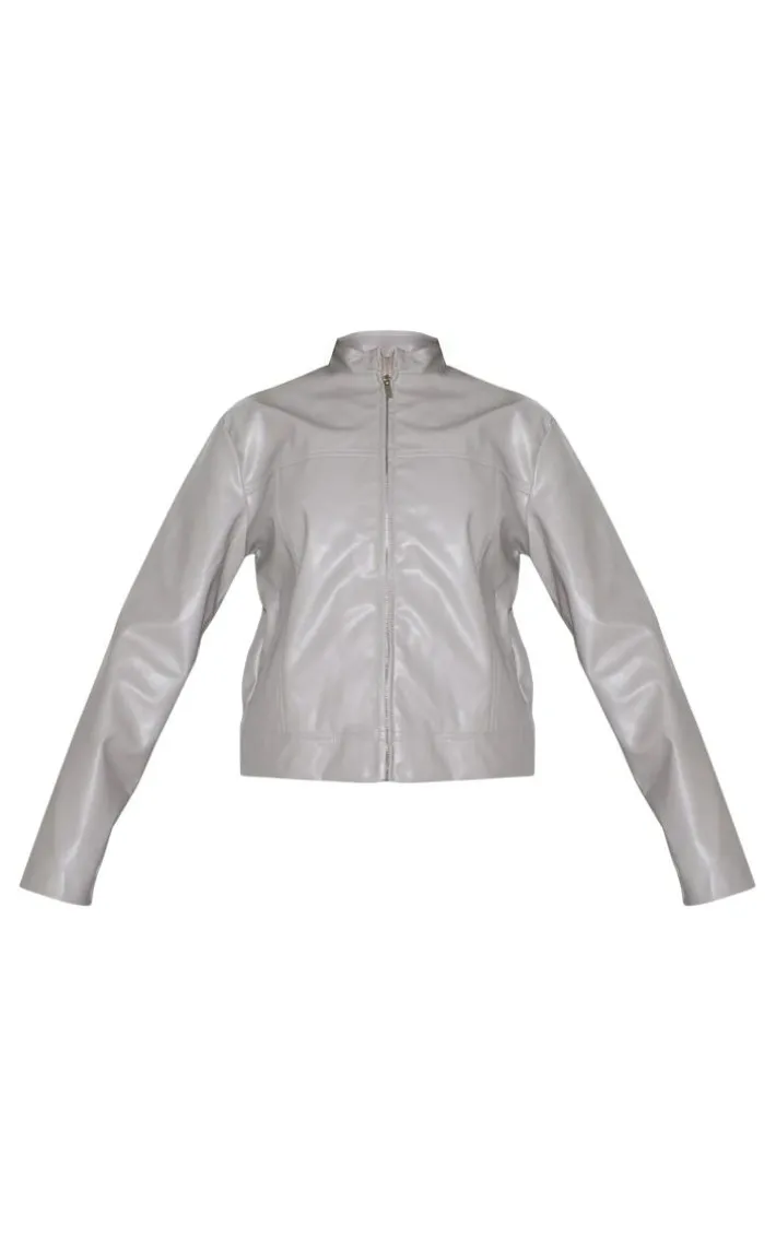 Turn heads for all the right reasons this season with this grey PU racer neck jacket. Made from a grey PU material with a racer neck design and a figure-flattering fit, how could you not be in love? Here to add that extra edge to your look and take it to the next level, this jacket is a yes from us. Team with a seriously chic look, chunky kicks and your fave accessories for a look like no other.