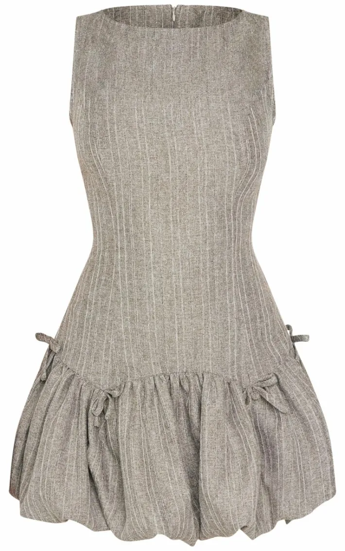 Introducing this grey puffball bow detail shift dress as your new go-to. Made from a grey hue material with a puffball skirt design and bow detail, this shift dress is a must have this season. Pair with knee high boots and gold accessories for a look like no other. We’re obsessed.