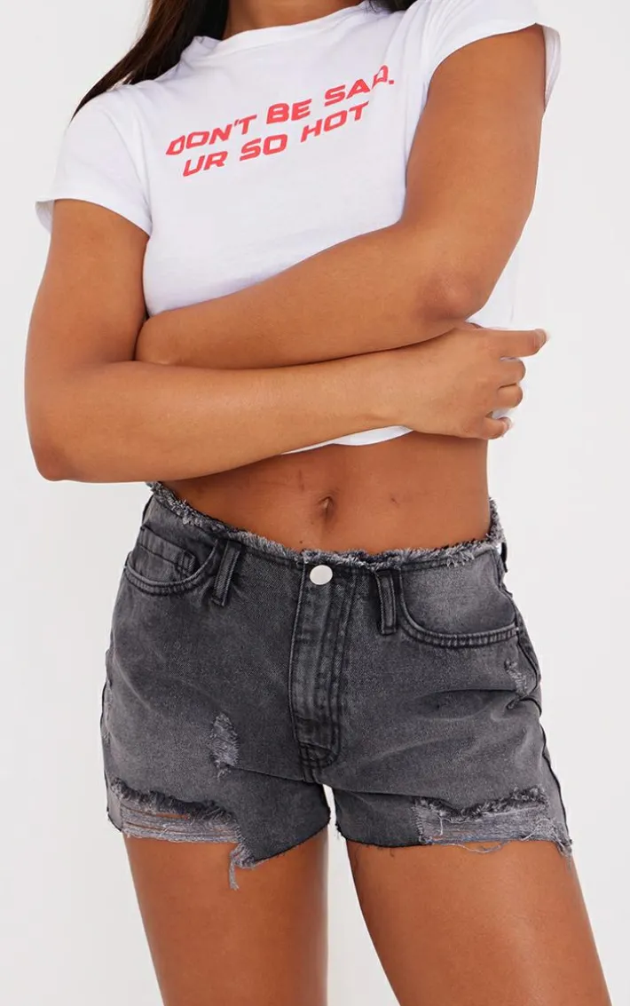 These grey raw edge denim hotpants are sure to be a staple in your new season wardrobe. Brought to you in a grey hue denim material with raw edge detailing and a flattering fit, what more could you want? Style these denim hotpants with a statement tee, sneakers and simple gold accessories for an everyday look that is sure to turn heads.