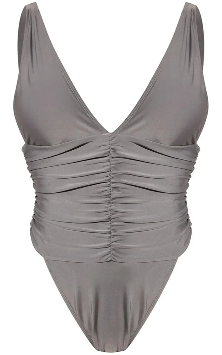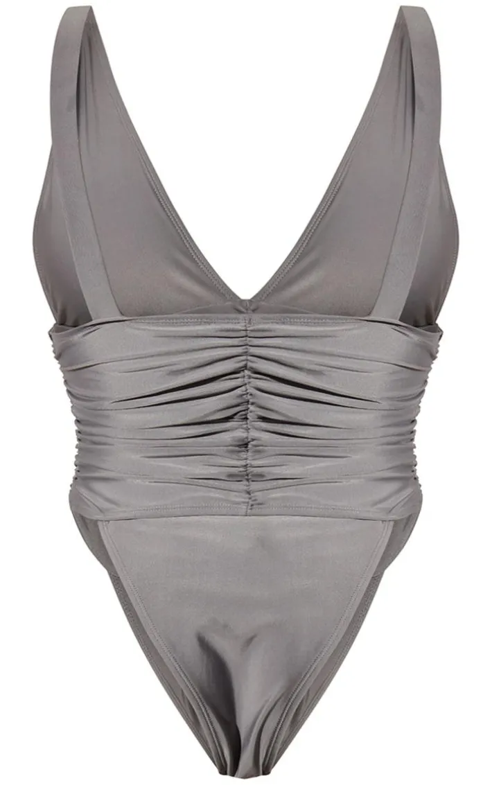 Have all eyes on you with this grey ruched waist high leg plunge swimsuit. This swimsuit is brought to you in a grey material with a ruched waist, a high leg fit and a plunge neckline, how could you say no? This swimsuit is everything and more we’re loving paired with your sandals and gold accessories for a look like no other.