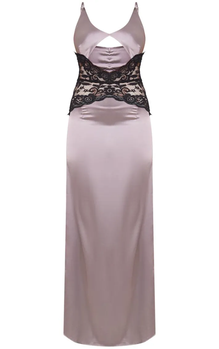 Be the center of attention in any room with this grey satin lace insert maxi dress. Brought to you in a grey satin material with a lace insert that will have you tapping into your confident side no matter what. With its maxi length, its a yes from us. Team this unreal dress with a pair of your highest heels and accessories of your choice for an Insta worthy finish.