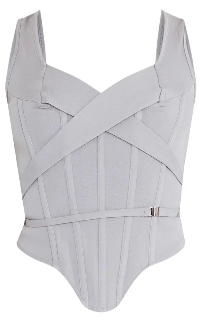 When the dress code calls for ‘jeans and a nice top’, this grey stretch woven boned cross detail corset ticks all the boxes. Made from a grey stretch woven material with cross detail and boned detailing, how could you say no? The perfect addition to your weekend wardrobe, this corset is calling your name. Inject some seriously glam vibes to your look, with denim jeans, clear heels and gold accessories. It has our seal of approval.