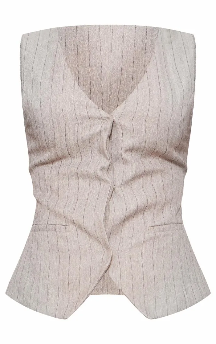 Go for all the effortlessly chic vibes with this grey striped tailored woven v neck vest, we just can’t get enough. This vest features a grey woven material with a striped design and a v neck style. Pair this v neck vest with the matching pants, sandals and a shoulder bag for a flawless finish.