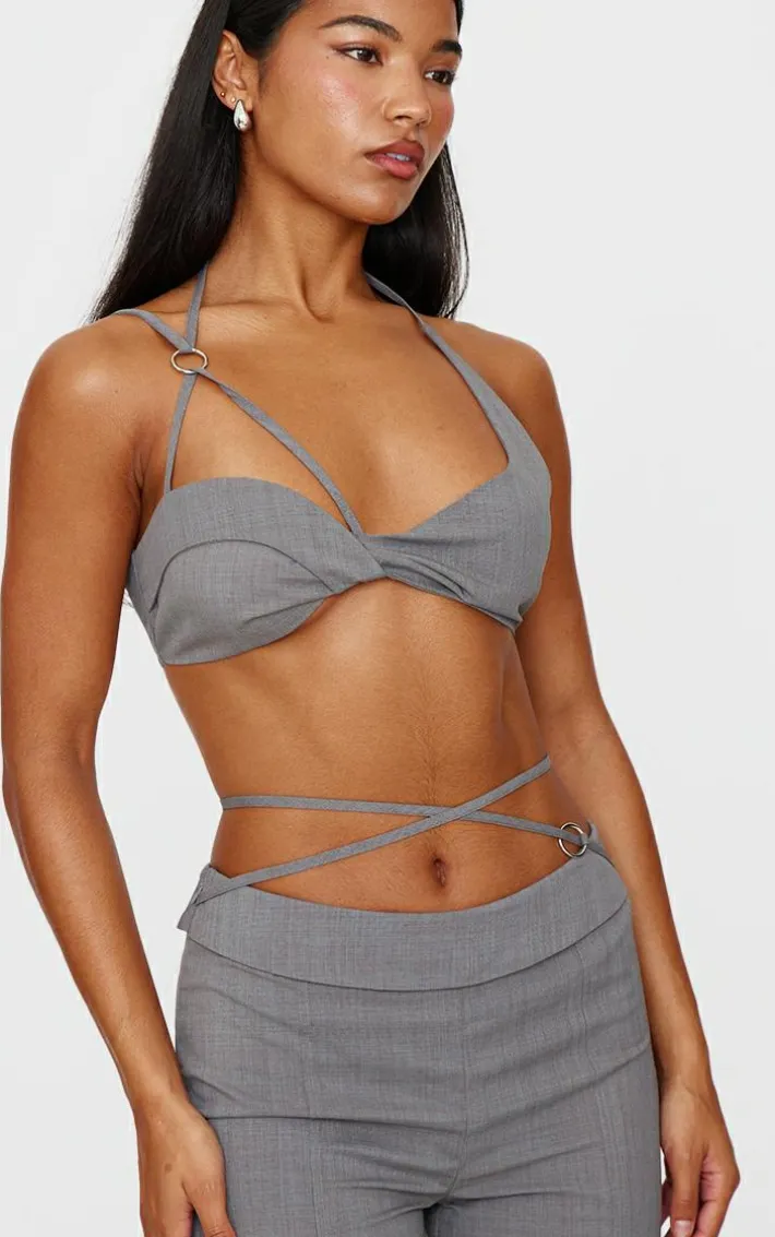 This grey tailored twist bust detail bralet is here to banish any of your what to wear dilemmas. Brought to you in a grey material with a tailored design and a twist bust detail, we can’t get enough. From start to finish this bralet will have you looking totally on-trend. To turn heads, team with your fave accessories. It’s a yes from us doll.