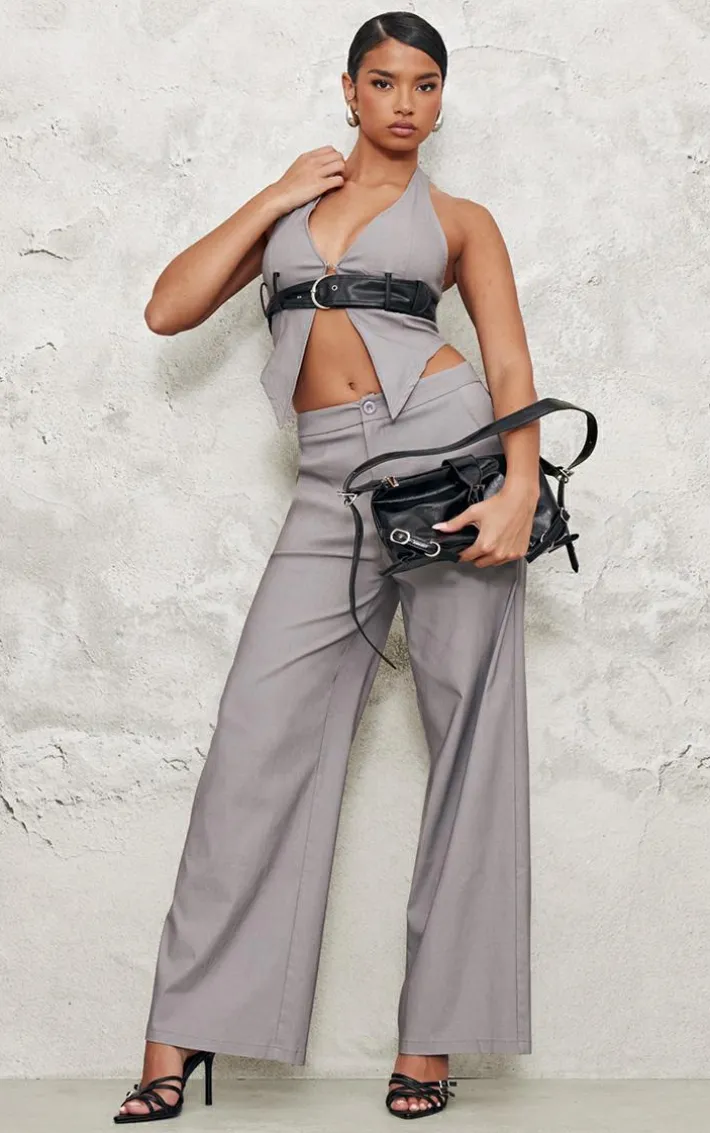 These grey tailored wide leg pants are here to banish any of your what to wear dilemmas. Brought to you in a grey material with a wide leg design, we can’t get enough. From start to finish these wide leg pants will have you looking totally on-trend. For a next-level look simply style with a bandeau top and your fave heels. It’s a yes from us.