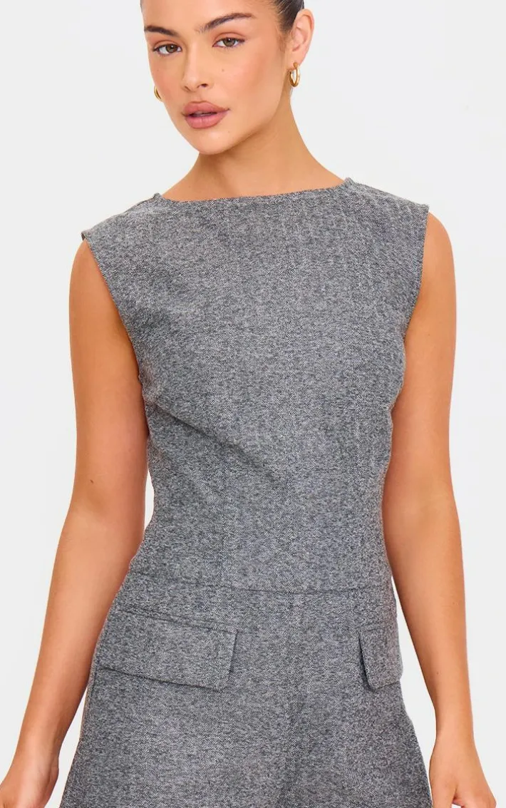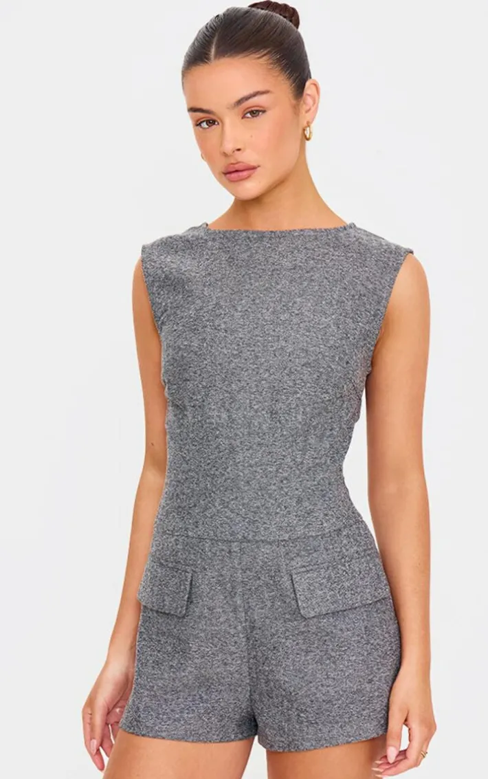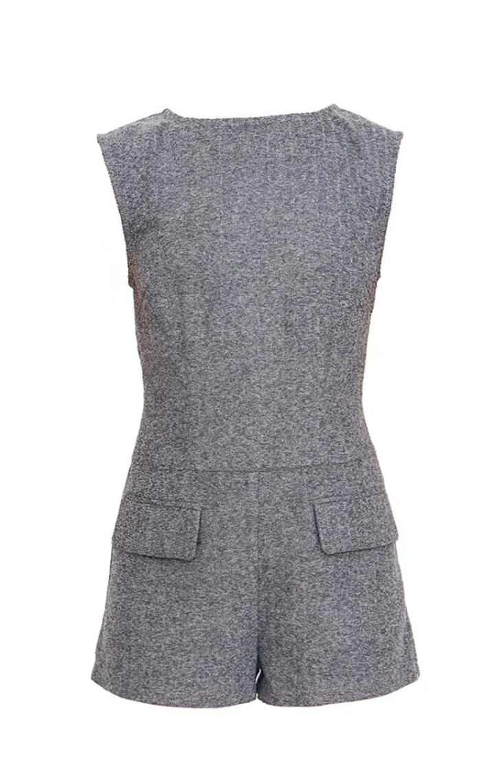 Add some versatile hues to your wardrobe with this grey tweed sleeveless pocket detail romper. Nothing says ‘new season’ quite like its grey tweed fabric, and its sleeveless design and pocket detailing will instantly elevate your outfit of the day. Just add a pair of faux leather loafers, a blazer coat and a bag to give this romper its moment.