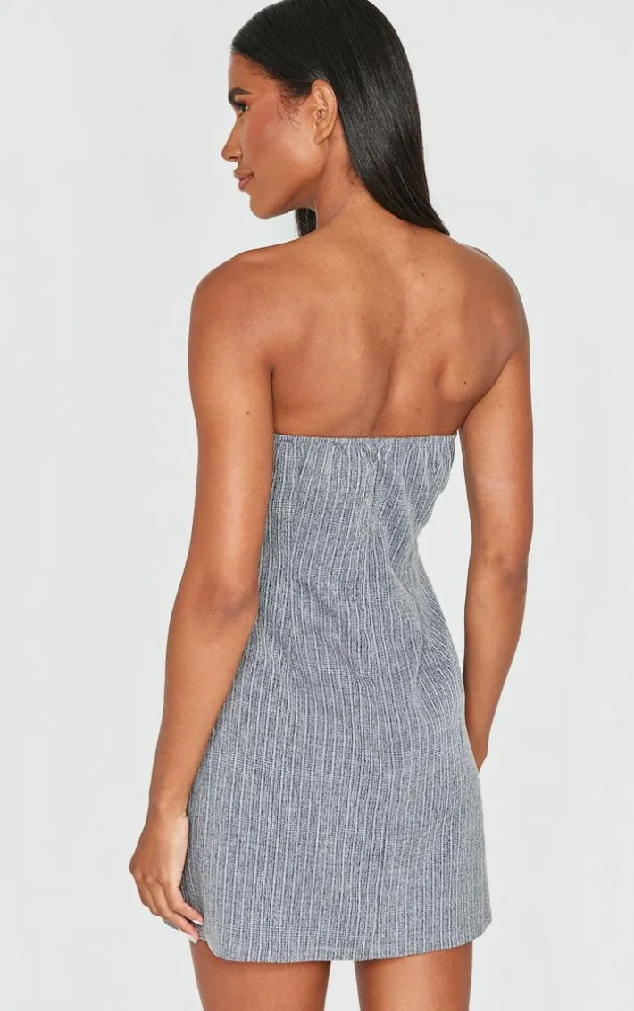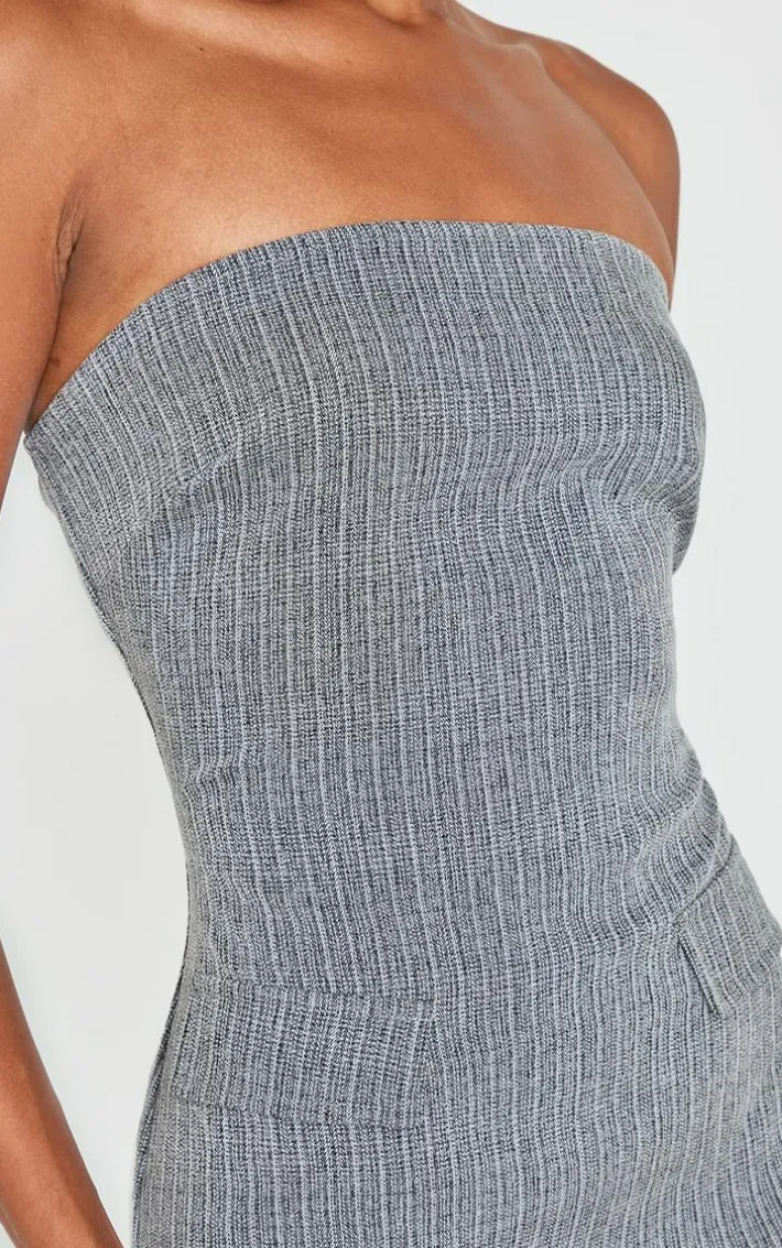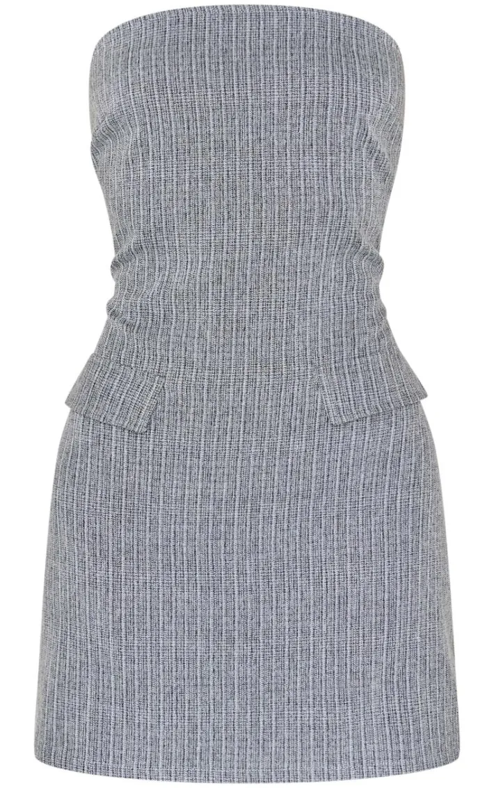 Take the stress out of weekend styling with this grey twill bandeau shift dress. Brought to you in a grey twill material with a bandeau neckline and a figure-flattering fit, what more could you need? This shift dress is perfect for dressing up or down to suit your weekend plans. Just add heeled boots and gold accessories to complete the look.