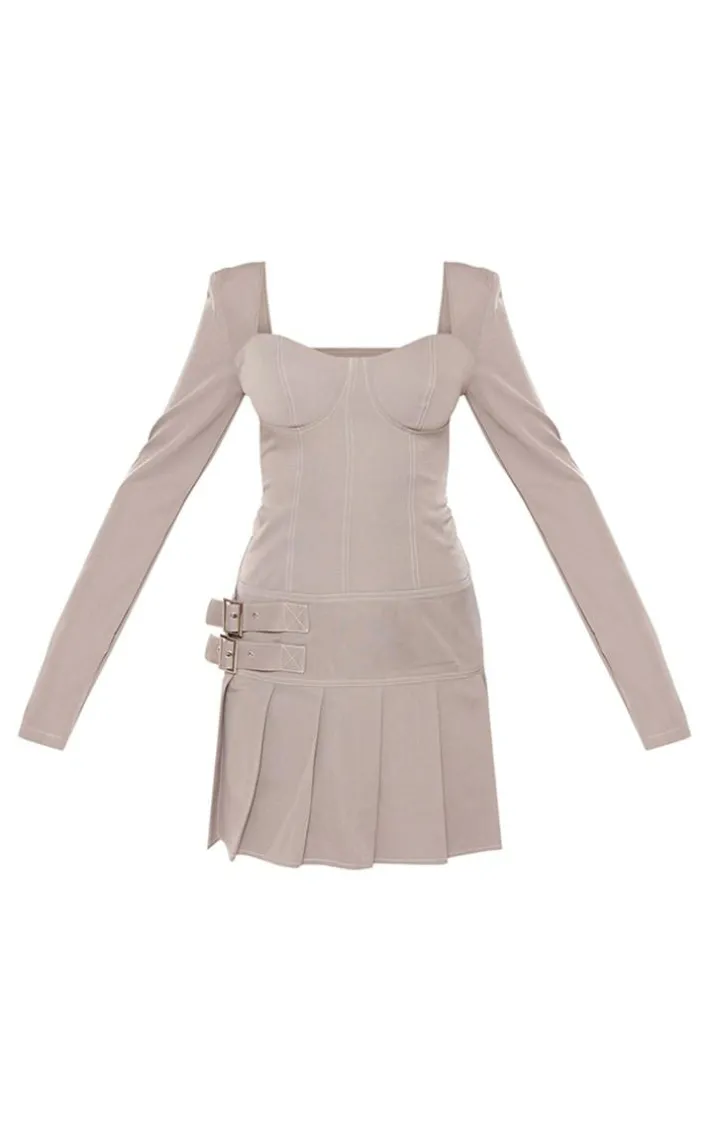 Channel all the luxe vibes into your new season wardrobe with this grey twill buckle contrast stitch pleated shift dress, get ready to earn all the likes. This shift dress features a grey twill material with contrast stitch detailing and a pleated design, we’re seriously in love. Just add your fave heels and a shoulder bag for a look no one will forget.