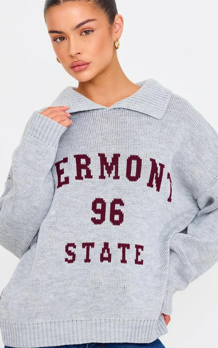 Keep it chilled with this grey vermont knitted sweater. Brought to you in a versatile grey tone, with a ‘Vermont’ design and cosy knitted material, this sweater is all the new you need for the season ahead. Team with some wide leg jeans and a pair of sneakers for the ultimate slouchy day time look.